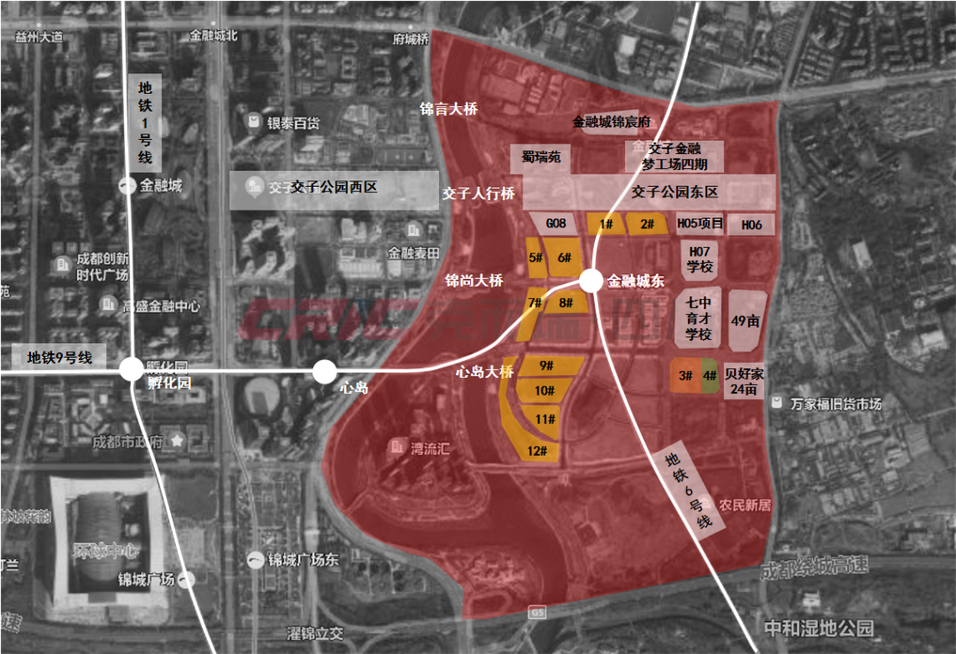 中指研究院认为,该地块所处金融城锦江片区,板块现状投资价值较高,规划利好较多。所在位置交通便利,邻近地铁6号线、9号线,多条公交线路环绕,且距离金融城东地铁站仅0.7公里。周边生活氛围浓厚,教育、商业、医疗配套完善,地块3公里范围内聚集了成都高新区锦晖小学、成都市中和中学高中部、中国人民解放军第四五二医院(空军成都医院)技术指导医院、购物中心高新合生广场等生活配套。景观资源方面,周边有中和湿地公园、桂溪生态公园等47个公园景点。