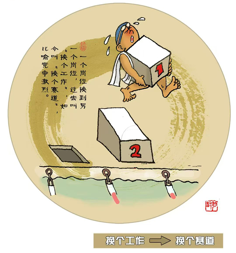 一个岗位换到另一个岗位,过去叫“换个工作”,如今叫“换个赛道”,比喻竞争激烈。