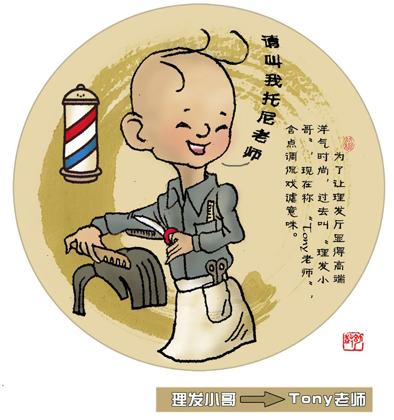 为了让理发显得高端洋气时尚,过去叫“理发师”,现在称 “Tony老师”,含点调侃戏谑意味。