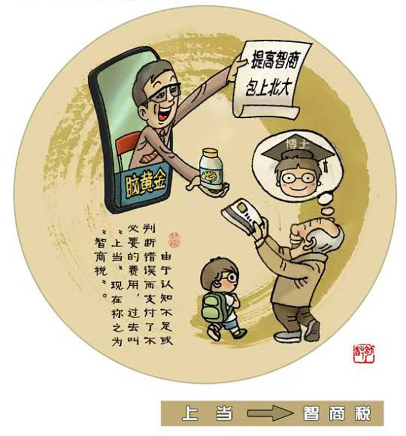 由于认知不足或判断错误而支付了不必要的费用,过去叫“上当”现在称之为“智商税”。