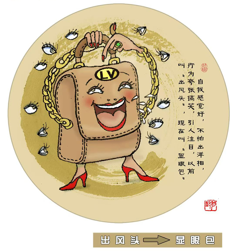 自我感觉良好,不怕出洋相,行为夸张搞笑,引人注目,以前叫“出风头”,现在叫“显眼包”。
