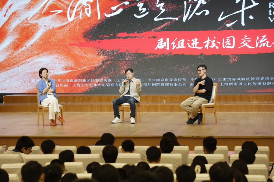 3月27日至29日,上海东方艺术中心制作出品的革命历史题材话剧《人间正道是沧桑》再度上演。演出前,刘旭、许源、李倩三位演员走进建平中学,为高一学生带来一场别开生面的艺术思政课。红色剧目深入教育、浸润美育,为东艺20周年庆系列活动奏响序章。