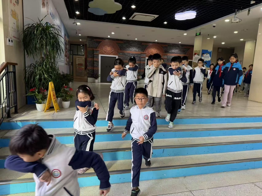 在消防演练环节,淮海中路街道平安办的工作人员现场模拟火灾场景,随着警报声响起,校园内迅速弥漫起“烟雾”,各班级老师立即组织学生用湿毛巾捂住口鼻,按照预定的疏散路线,迅速、有序地撤离到学校操场的安全区域。整个疏散过程紧张有序,师生们动作迅速,配合默契,仅用了短短几分钟,全校师生就全部安全撤离,充分展现了学校在日常安全教育中培养出的良好应急反应能力。