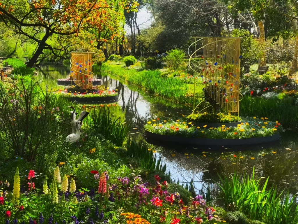 同样在天鹅池畔展示的《天鹅码头》,则根据莫奈名作《塞纳河帆船》《阿让特伊的塞纳河》《湖畔小屋》《勒阿弗尔的傍晚》《赞丹扎安河的住宅》来构思呈现。该景点结合天鹅池天然水岸景观特点,将莫奈原画中码头、帆船,建筑等进行立体还原,描绘出一幅生机勃勃的春日港口的忙碌景象。同时,画中的核心元素——帆船,将根据原画,结合花艺布置进行实体化艺术再创作,让整体画面更加有层次和艺术氛围。