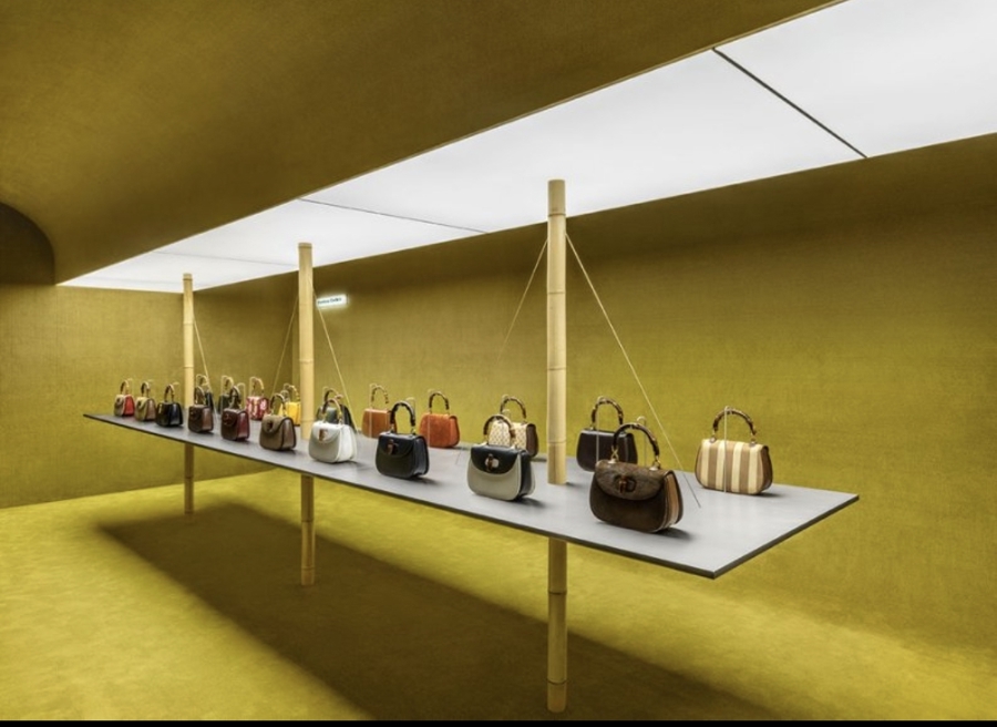 古驰用品牌匠心呈现了全新展览《竹境:解译传奇》,深度挖掘品牌典藏资料,探索经典手袋的演化历程。该品牌的Gucci Bamboo 1947系列竹节手袋,是品牌经典之一,标志性的弧形竹节手柄是手袋的命名由来。在中国,竹子自古以来便是谦逊、高洁与坚韧的象征,古驰用竹子来致敬中国市场。本次展览落址上海孙科别墅。
