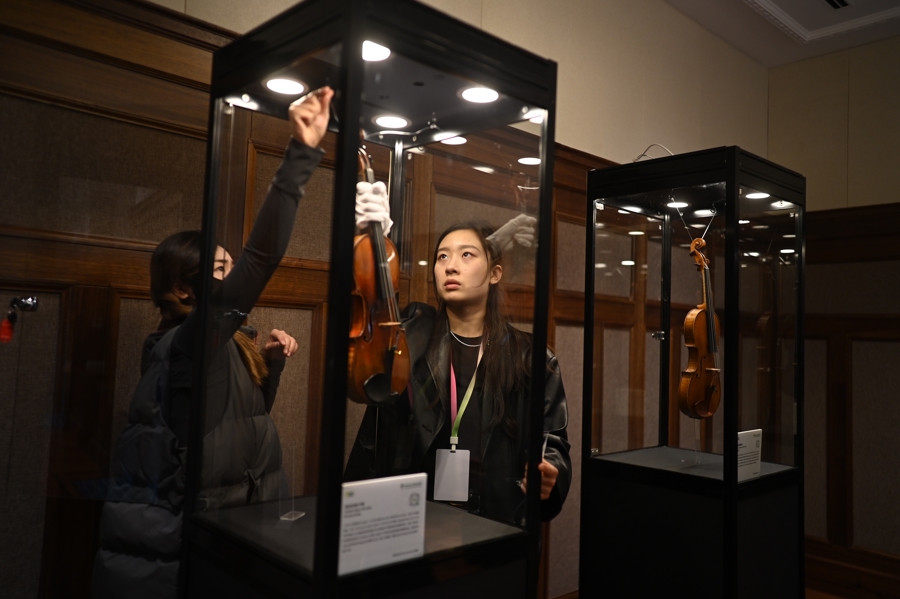 “中外提琴珍品艺术展”是“春之琴韵 爱乐之都——上海之春国际提琴文化周”重磅展览之一。制琴师、上海音乐学院副教授薛彭说:“61件中外名琴在上海集中展出,十分难得。这些名琴在‘变老’的过程中,有专业的制琴师和演奏家进行保养和调整,现在大多保持着良好的状态,其中一些名琴依然可以演奏,发出穿越时空的声音。”