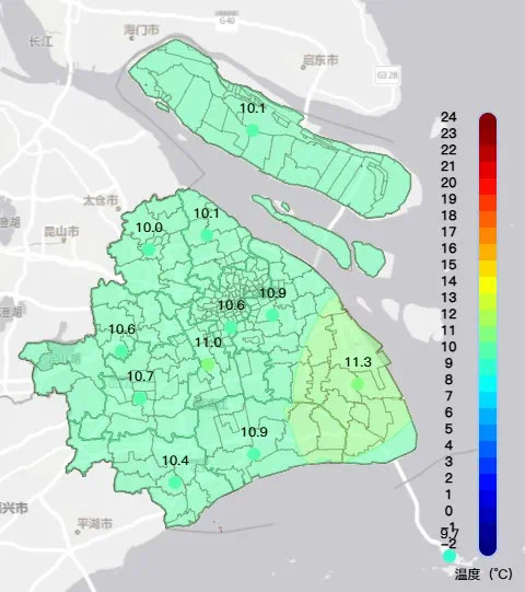 今天(28日),上海受冷空气影响,白天云系较多。全天温差较小,中心城区(徐家汇站)最低气温8.3℃,最高气温10.6℃,较昨天又降了接近10℃,较前天低了20多℃,体感湿冷。昨天半夜一波雷雨来袭,27日20时至28日8时雨量统计显示,全市大部出现小雨,南部奉贤区、金山区降水明显。