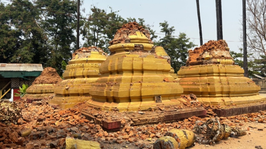 3月28日,缅甸内比都一处佛塔遭地震破坏。新华社 图