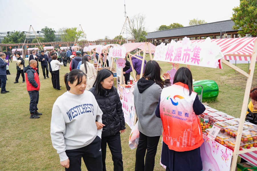 周边还设置了桃源市集,涵盖美食类、体验类、农产品、休闲优品等50多个特色摊位,吕巷米糕、非遗土布贴画、手工竹编等特色产品吸引了众多市民驻足。“这里不只有桃花,更看得见乡愁、摸得到文化、品得出幸福。”市民张先生说。据介绍,未来,水果公园将常态化开设市集,不断增加游客体验感。此外,现场还有汉服文化体验、赏花打卡、水上皮划艇、萌宠喂养和健康服务等一系列活动。