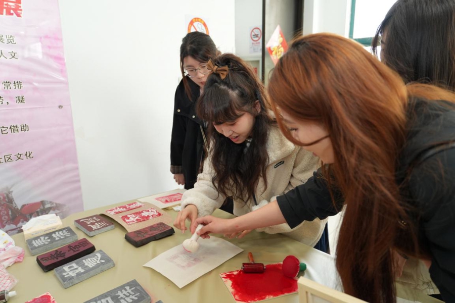 今年的寻“美”定海行动同步启动。在接下来的一个月中,定海路街道为社区居民提供了丰富的美育场景,居民可以在社交媒体上分享“打卡”社区地标的美图,还可以参加国家级非遗“上海港码头号子”导赏、“文明生活秀”活动。街道辖区内的博物馆、公园里也设置了各类手工制作、互动体验活动等着居民前往参加。活动当天,定海社区文化活动中心内就开启了麦秆画制作、团扇绘制、拓印体验、书画作品欣赏等多项美育活动,吸引了不少居民参与。