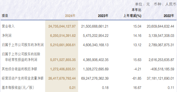 3月28日晚间,申万宏源发布2024年年度报告称,报告期内,公司实现营业收入247.35亿元,同比增长15.04%;实现归属于上市公司股东的净利润(下称“净利润”)52.11亿元,同比增加13.12%。