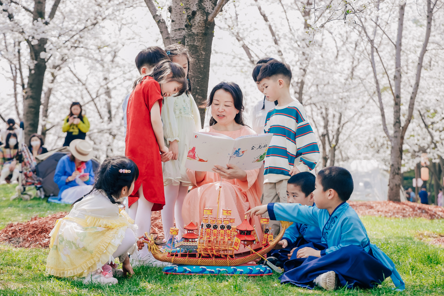 宝山区图书馆特邀全国乡村阅读推广人吴斌荣,为孩子们讲述以国家级非遗宝山罗店划龙船技艺为蓝本的原创绘本《金龙船》,让古老技艺以艺术之名,亲近童心,焕发传承之美。