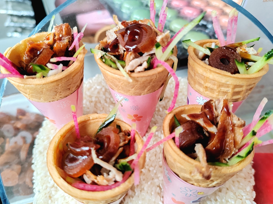 旭辉MALL的商户和周边的餐饮店也带来了他们的专业出品,烤鸭甜筒、麻辣牛杂等美食让市民们从大早上就开始大饱口福,有市民说“饱得中饭也吃不下了”,餐饮商户工作人员也高兴地说,这是一个展示的机会,也可以直接听到市民反馈,再加上通过对现场各个摊位人气的观察,也有利于判断消费热点和趋势,为他们的经营带来参考,今后不断推陈出新,让四平社区更有烟火气。