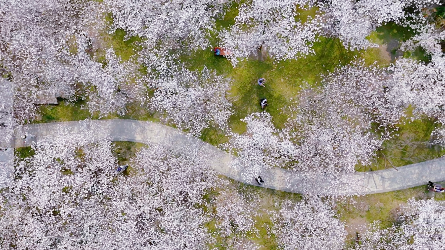 樱花树下,团扇制作活动吸引了不少文艺青年,来自市区的游客小李说:“一边做扇子,一边看花瓣飘落,这才是春天该有的仪式感!”花海中,姑娘们穿着汉服打卡拍照,美食爱好者在十八坊集市中穿梭,单身青年们在咖法学园邂逅春日的甜蜜,共同体会着春日的无限美好。