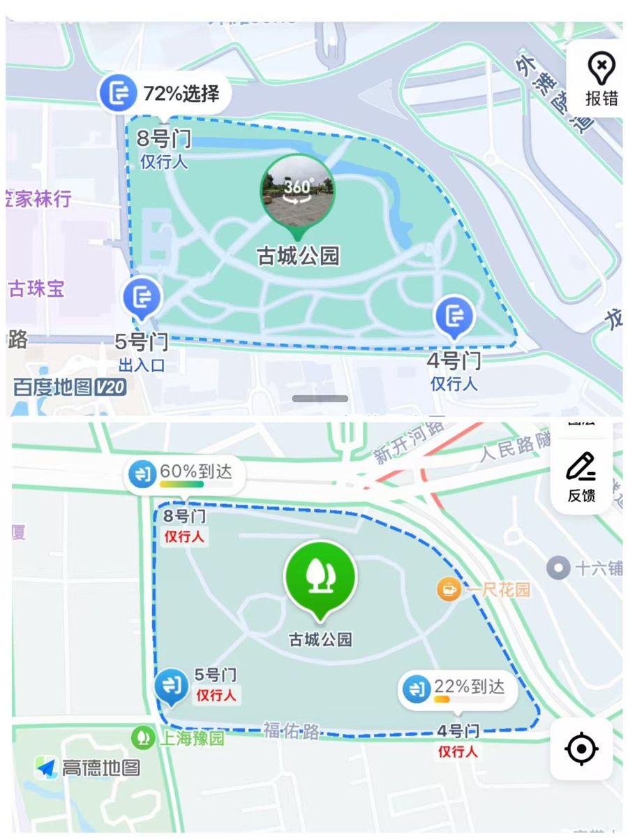 但鞠女士认为,开放4号门能让公园“每个角都有出入口,反而有利于人流疏导”。她还拿出手机演示,在多个主流导航软件上,都显示4号门为开放状态,可供行人通行,“现在不开放,还会误导使用导航软件的游客”。