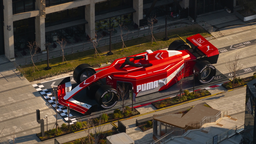 F1上海站期间,西岸梦中心PUMA巨型赛车主题快闪。资料图片