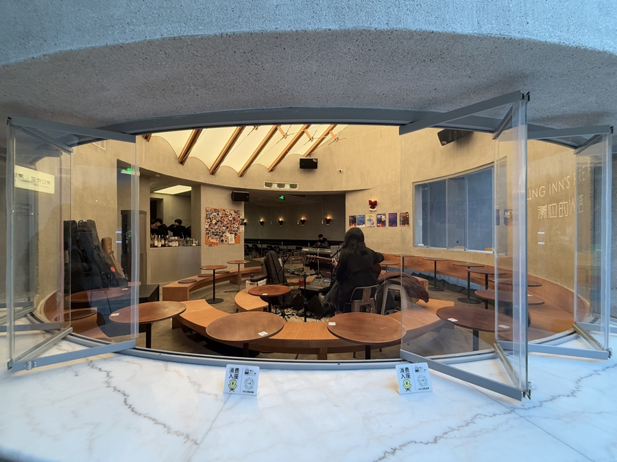 旧时的蟠龙印刷厂经过改造,引入了复合业态品牌“漾应的火塘”,店内空间保留了老厂房的砖木结构,改造为一座环形演出剧场,成为蟠龙天地独特的体验空间。