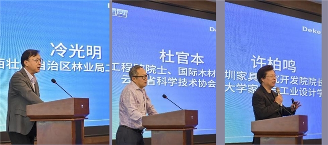 中国木材与木制品流通协会会长李佳峰、全联家具装饰业商会副秘书长明占喜、广西林业产业行业协会会长万业靖等分别致辞,肯定了德科康在技术攻坚、社会责任、创新驱动、降本增效等方面的成绩,为行业树立起品质标杆,有力推动了行业的转型升级,并为本次大会成功召开送上诚挚祝福。