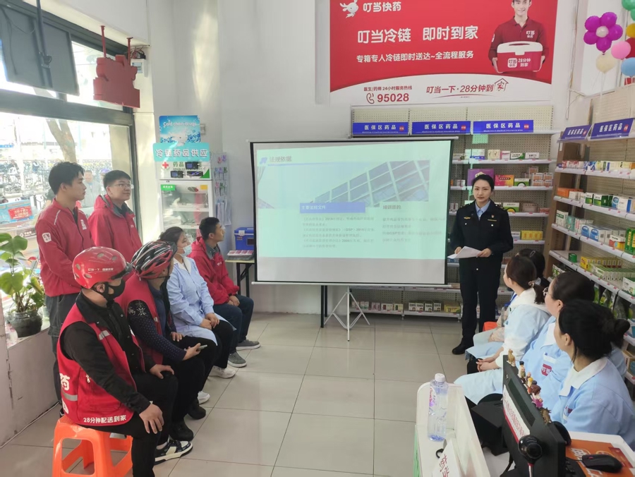 为切实保障人民群众用药安全,加强药品质量全链条监管,聚焦这一“药”紧事,静安区市场监管局对辖区药房开展深入走访调研,积极探索消除隐患的新路径、新模式。在调研过程中了解到,叮当快药公司希望利用其自有送药平台拓展药品冷链终端配送服务,但在上海没有成熟的案例可供参考,企业面临诸多难题。在得知企业需求后,静安区市场监管局高度重视,科所联动多次上门进行事前合规指引,从设施设备、制度建设、人员培训、应急处置等不同角度,为企业提出专业性的指导意见。