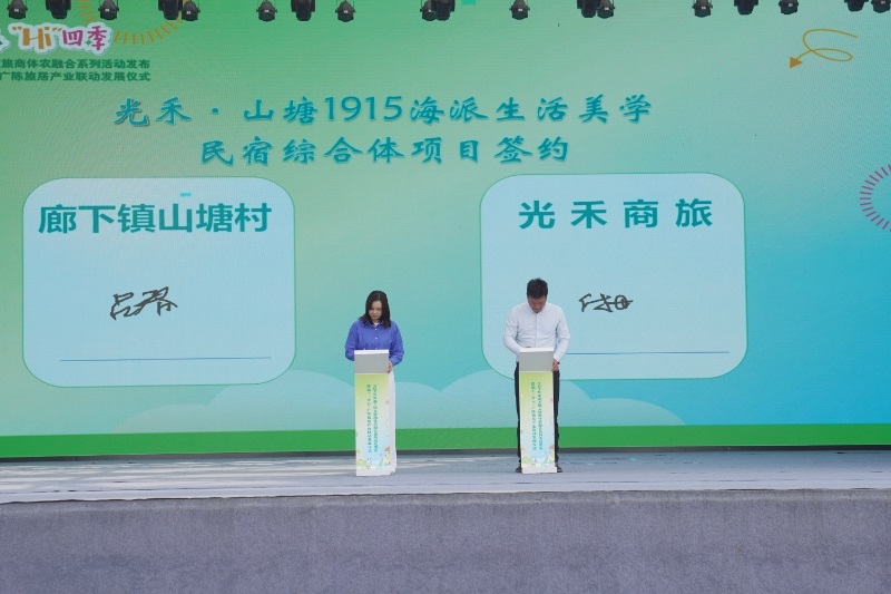 据介绍,当天签约的光禾·山塘1915海派生活美学民宿综合体项目,位于廊下郊野公园核心区的明月山塘景区内,将于今年9月建成并投入试运行。该综合体将海派风情与山塘村的水乡特色完美融合,精心打造出33 间风格各异的客房。
