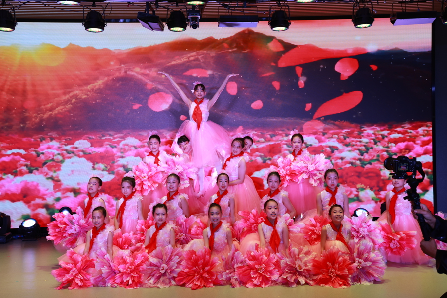 启动会上,上海市实验小学长兴分校的师生共同呈现舞蹈《成长在祖国的怀抱里》