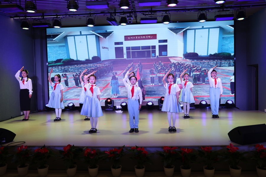 启动会上,上海市实验小学长兴分校的师生共同呈现朗诵《光影传承 童心向党》