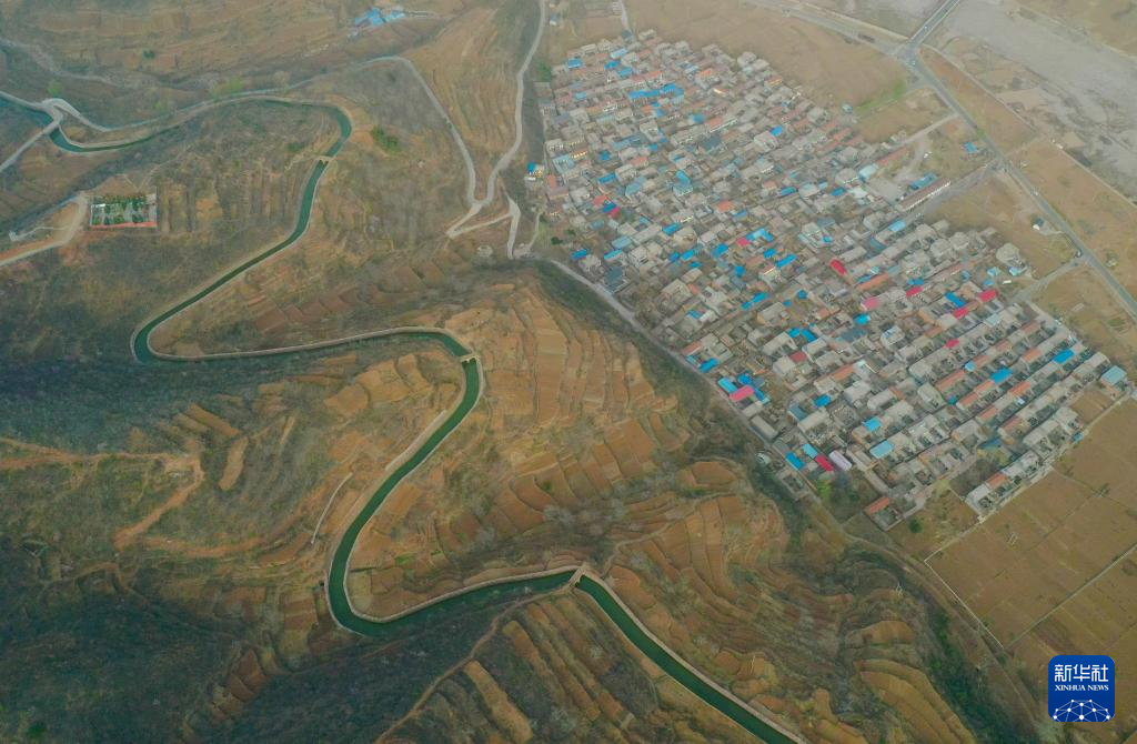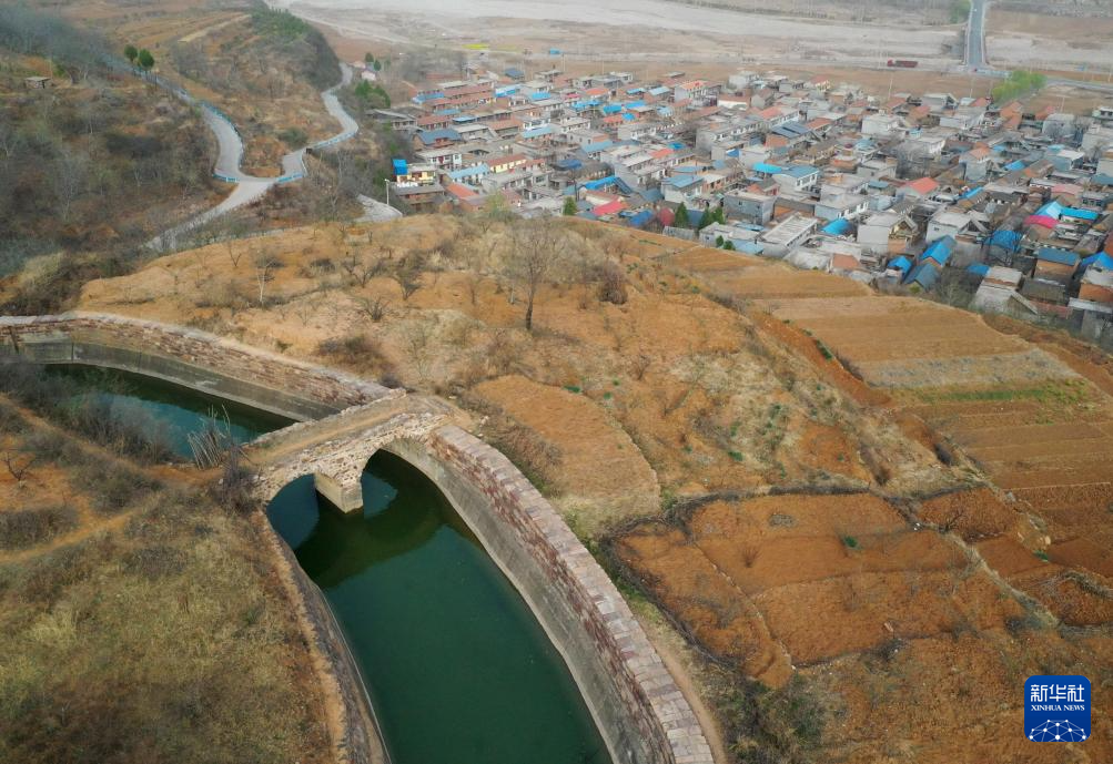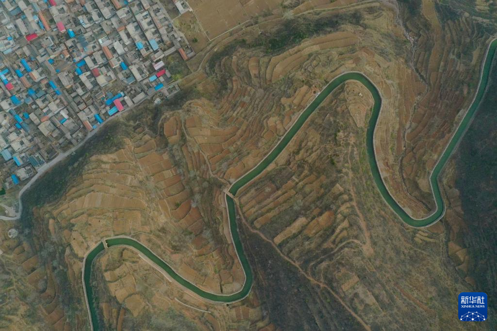 这是3月25日在河南省林州市任村镇阳耳庄村附近拍摄的红旗渠总干渠(无人机照片)。