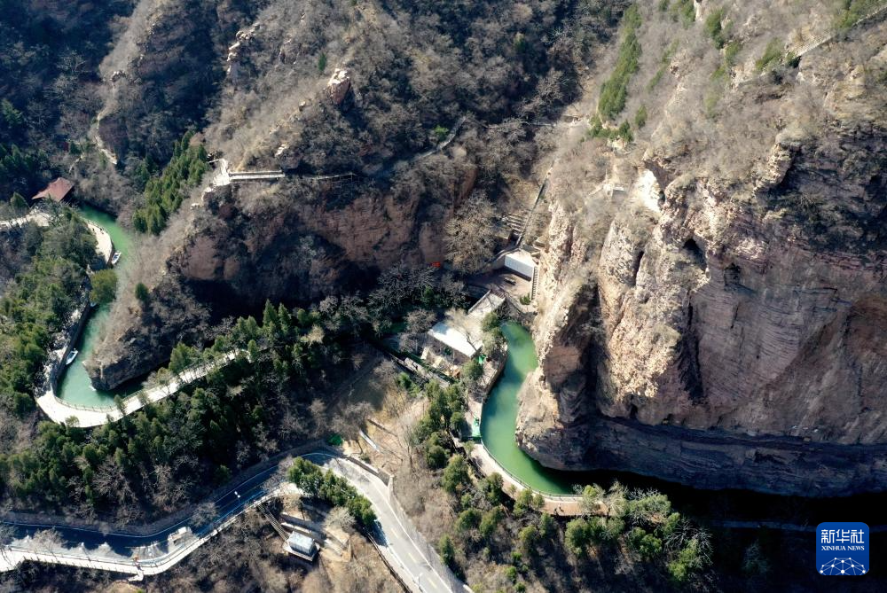 这是3月25日在河南省林州市红旗渠风景区附近拍摄的红旗渠总干渠(无人机照片)。
