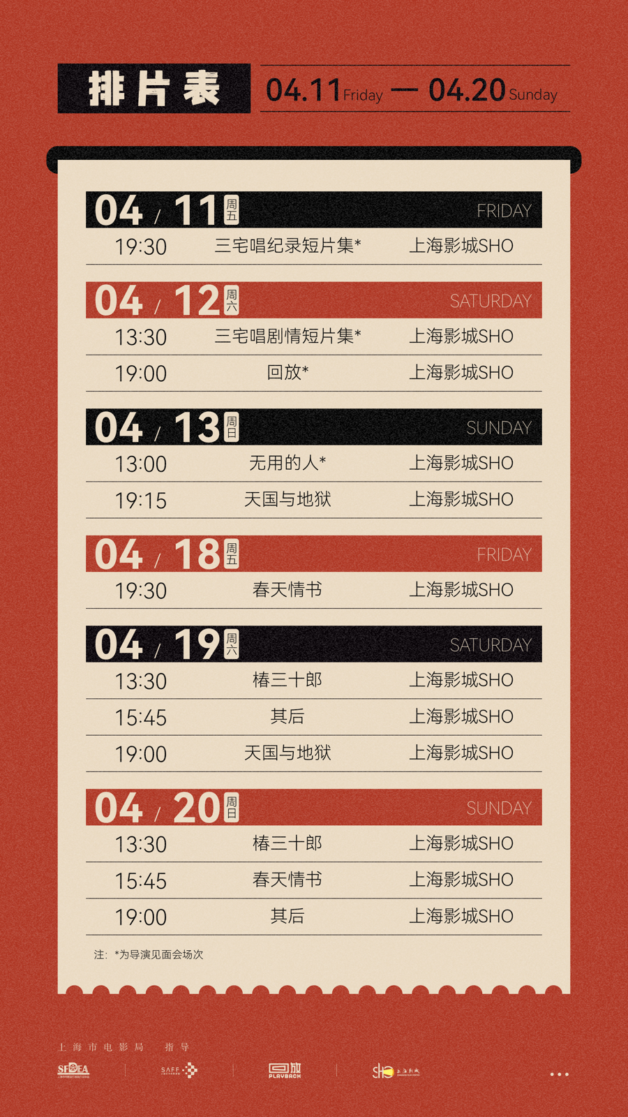 此次“日本电影展”展映影片包括三宅唱剧情短片集(《1999》《长滨》《八月八日》《密使与看守人》《野性之旅》)、三宅唱纪录短片集(《驾驶舱》《无言日记2018》),三宅唱导演的《无用的人》《回放》;经典影片《天国与地狱》《椿三十郎》《其后》《春天情书》等。