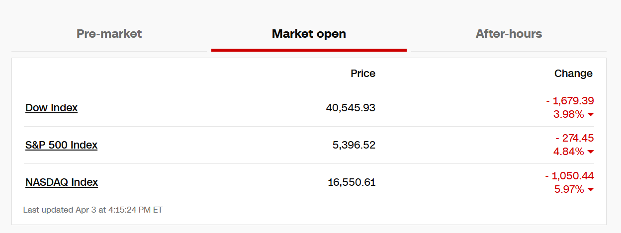 自残式关税血洗美股,三大股指创近5年最大单日跌幅