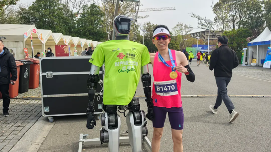 出现在2025上海长江半程马拉松现场的青龙人形机器人。“上海经信委”微信公众号 图
