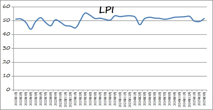 微信公众号“中国物流与采购联合会”4月4日消息,中国物流与采购联合会发布的2025年3月份中国物流景气指数(LPI)为51.5%,环比回升2.2个百分点。分项指数全面上升,业务总量指数和新订单指数环比回升明显,主要指数中业务总量指数、新订单指数、库存周转次数指数和业务活动预期指数等处在扩张区间。数据反映出,在节后市场平稳回升预期基础上,供应链上下游复工复产如期推进,产业需求有序释放,全链条运行效率提升。