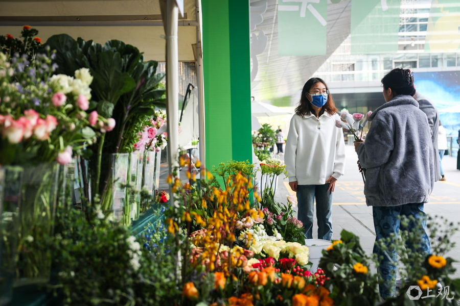 4月5日,人们来到花鸟市集感受自然美学与城市生活的创意碰撞。