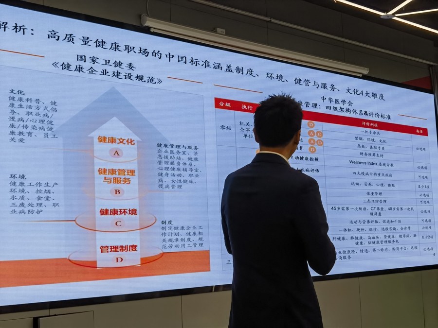 让企业家们感兴趣的是,园区还邀请平安健康企康业务部负责人从建设健康职场的角度,进行了《高质量健康职场洞察与探索》主题演讲,指出“健康职场≠员工体检+医疗保险”,而需要从办公空间优化到心理健康关怀项目设立,从健康促进活动开展到职业健康管理体系完善,构建健康职场的多元路径发展,才能助力企业实现经济效益与社会效益双赢。从企业视角来看,“健康管理,能降低人力成本,提升团队凝聚力。”