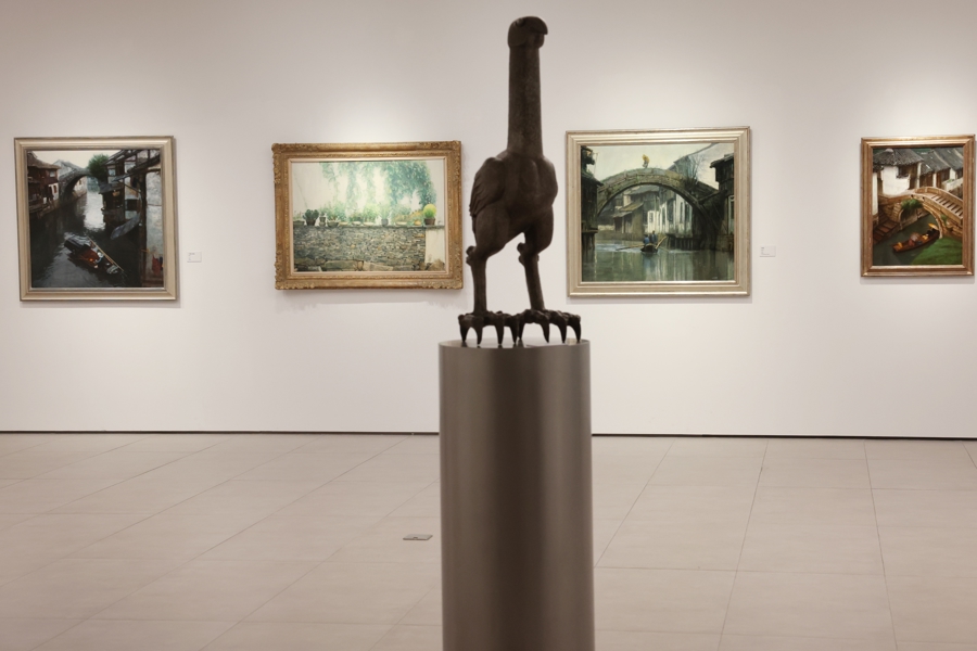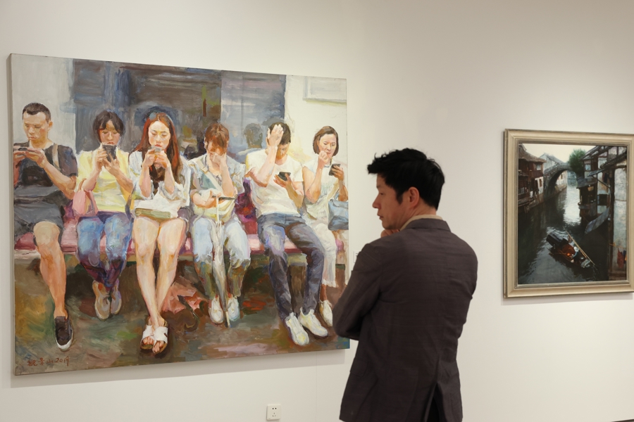 陈逸鸣的作品也在展出之列。相比于其他参展艺术家,家人的身份让他和陈逸飞有着更紧密的关联。他在自己的大尺幅油画作品《外滩风云》前回忆和陈逸飞成长的城市空间记忆,仿佛昨日再现。“在艺术上,陈逸飞非常重视绘画基本功,也一直督促我练素描,这种监督甚至接近于刻板。”陈逸鸣感慨,“陈逸飞离开我们已20年,假如这20年他仍在世,我相信他会给画坛带来更大的贡献。”
