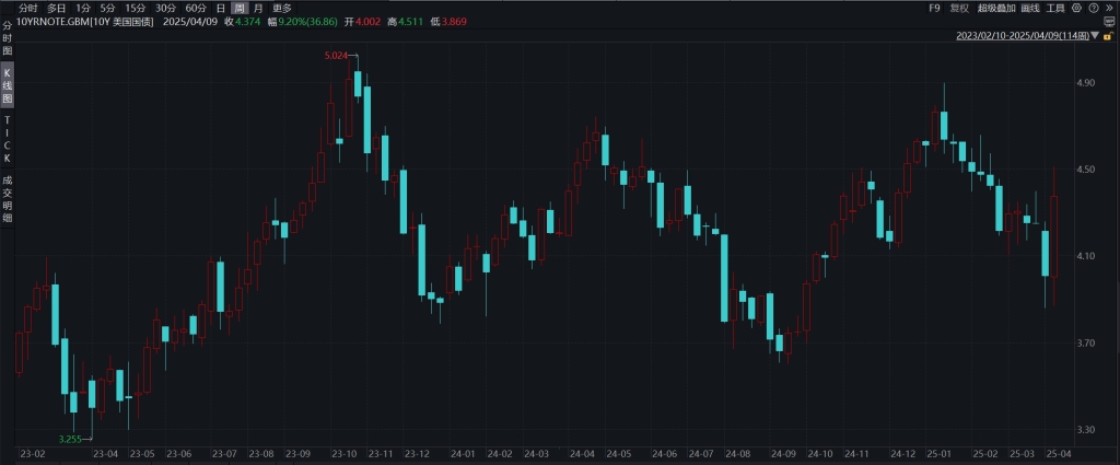 10年期美国国债收益率走势(周线) 数据来源:Wind