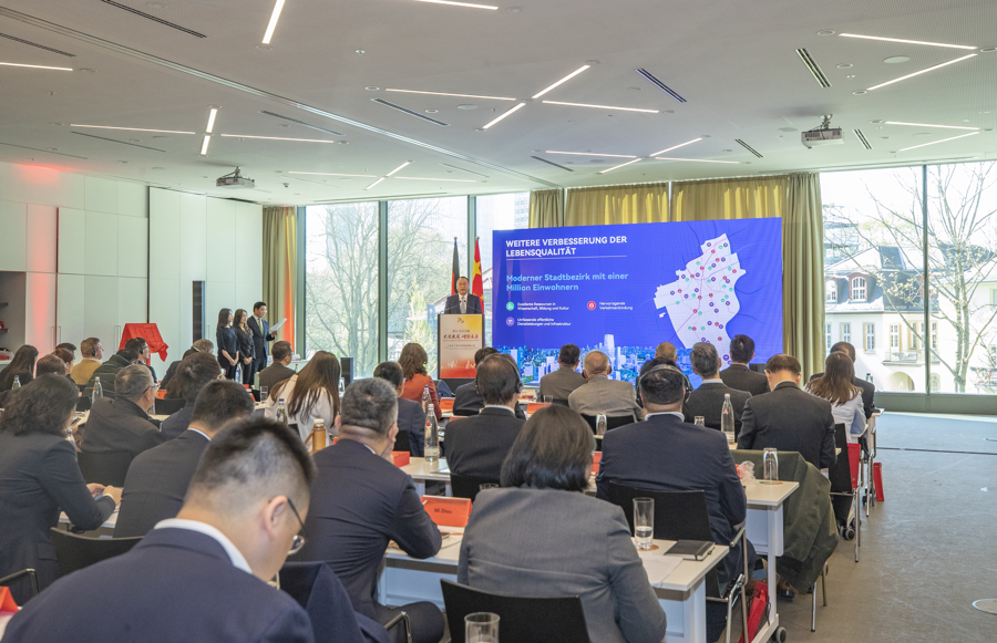此次推介会由上海市徐汇区人民政府主办,中国经济信息社上海总部、中国银行法兰克福分行、交通银行法兰克福分行全力支持。包括中国驻法兰克福总领事馆商务参赞陈岩、德国黑森州欧洲及国际事务司前司长Michael Borchmann、新华社柏林分社社长胡晓明、中国银行法兰克福分行行长陈隆建、交通银行法兰克福分行行长杨敏在内的100余位中德人士参加了推介会。