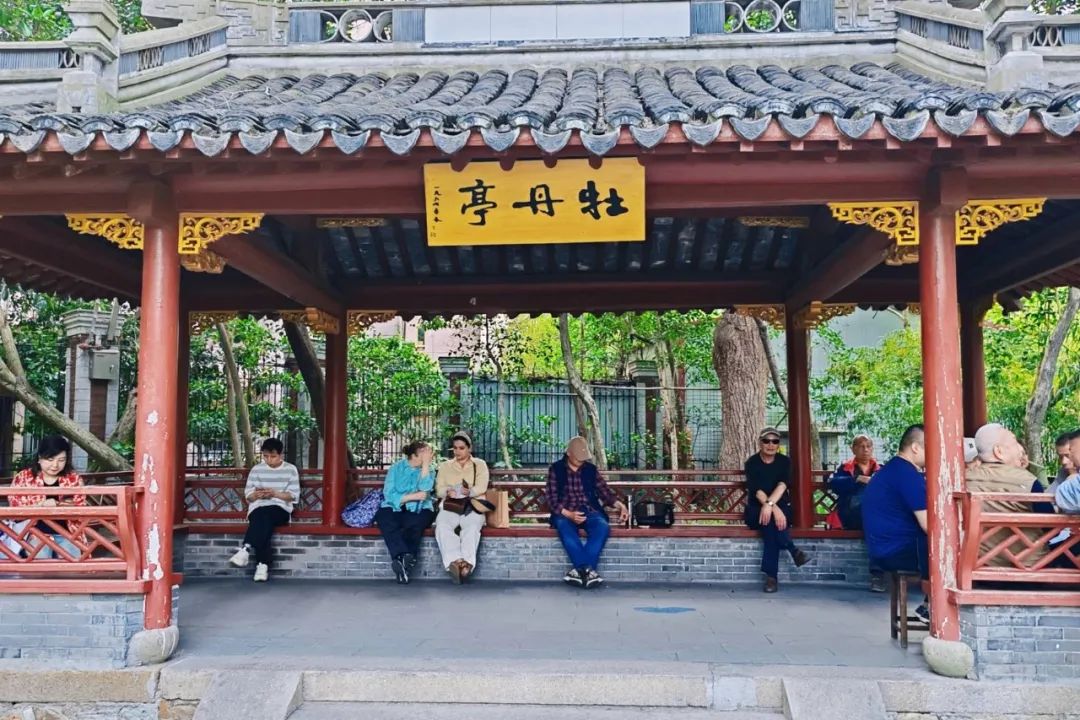 除了中山公园,天山公园里也设有牡丹园和牡丹亭。牡丹亭就设在牡丹园旁,古风凉亭与雍容牡丹相互映衬,最是出片。