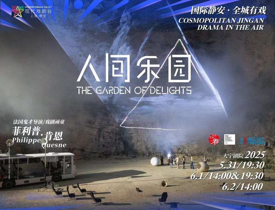 闭幕大戏《人间乐园》是法国导演菲利普·肯恩的复古未来主义传奇剧作,将舞台化身成飞沙走石的荒原,带领观众展开奇妙荒诞的旅程,窥探介于创世纪和末日浩劫之间的“人间乐园”,创造出一个充满隐喻与诗意的超现实世界,思辨未来、文明考古的同时,亦是对人类世代的生态寓言。