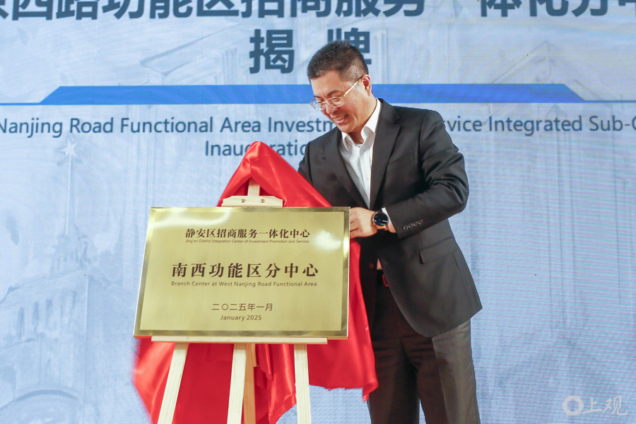 活动中,静安区委副书记、区长翟磊为“南京西路功能区招商服务一体化分中心”揭牌。