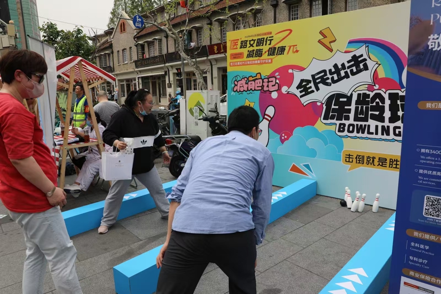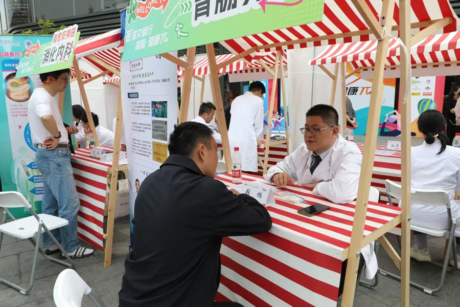 在脂肪大作战区,现场设置了健康操教学专区和趣味保龄球、投篮互动区,不仅可以参与趣味打卡,来自同济大学附属上海市第四人民医院脊柱外科、康复医学科和骨关节运动医学科的专家们,为市民提供个性化运动指导;康复医学科的康复治疗师们带练脊柱保健操、关节舒缓动作。在脂愈安神曲区,来自内分泌代谢科、胃肠外科、消化内科、睡眠医学科、神经内科的专家团队针对糖尿病、胃肠功能紊乱、睡眠障碍及神经调节等问题开展一对一咨询,解析升糖原理,指导科学饮食,助力慢病预防与生活质量提升。