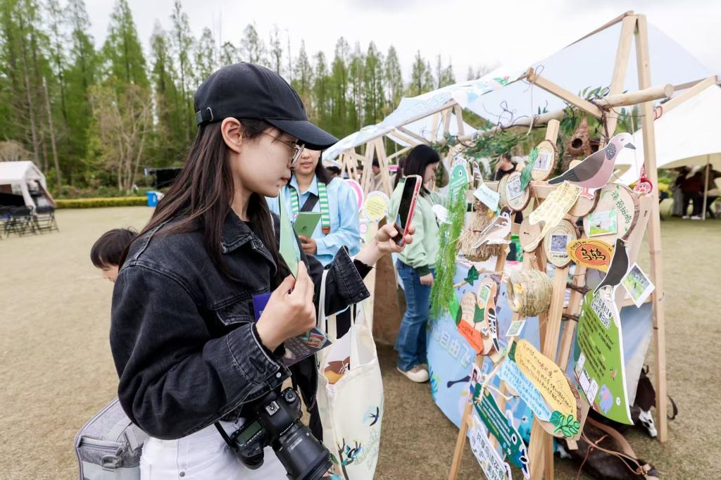 4月12日,在崇明东平国家森林公园,“爱鸟助飞”公益市集、“爱鸟护照集章之旅”互动打卡活动吸引了不少游客参与。来自上海自然博物馆、山水自然保护中心、自然补丁工作室、大城小虫工作室、217 Kids CLUB等16家机构精心布置展位,通过科普知识展陈、标本展示、游戏互动等多种体验,传播野生动物保护科学理念,引导市民亲近自然、热爱自然。