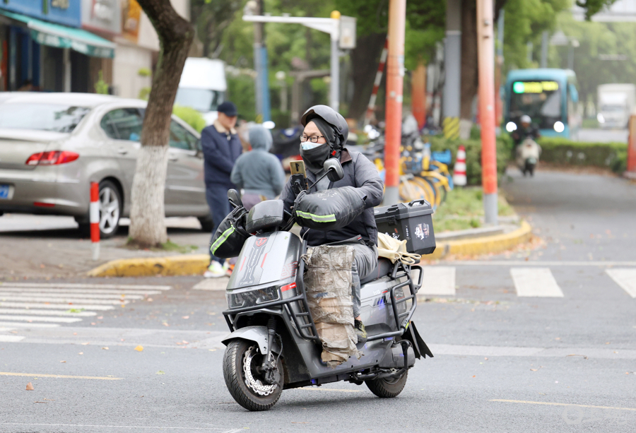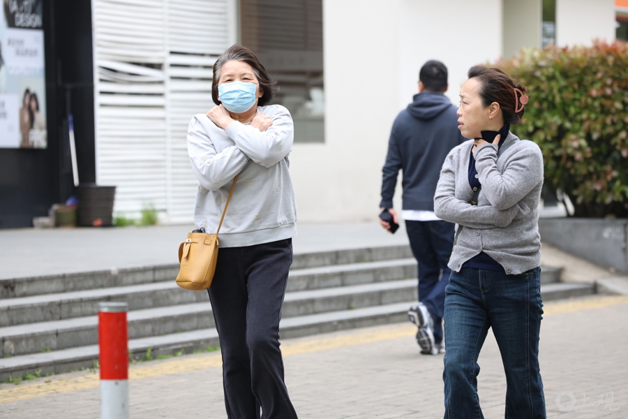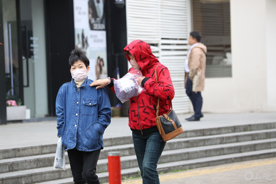 大风降温天气为市民出行带来困扰,重新身着厚衣保暖。