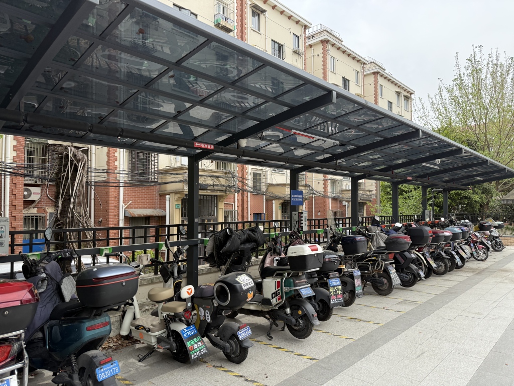 非机动车停车场设置的晾晒区域。