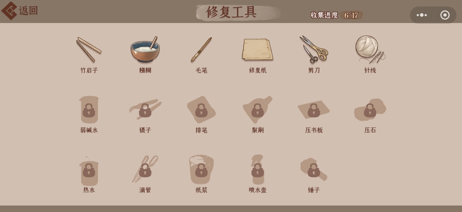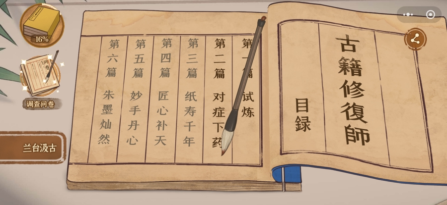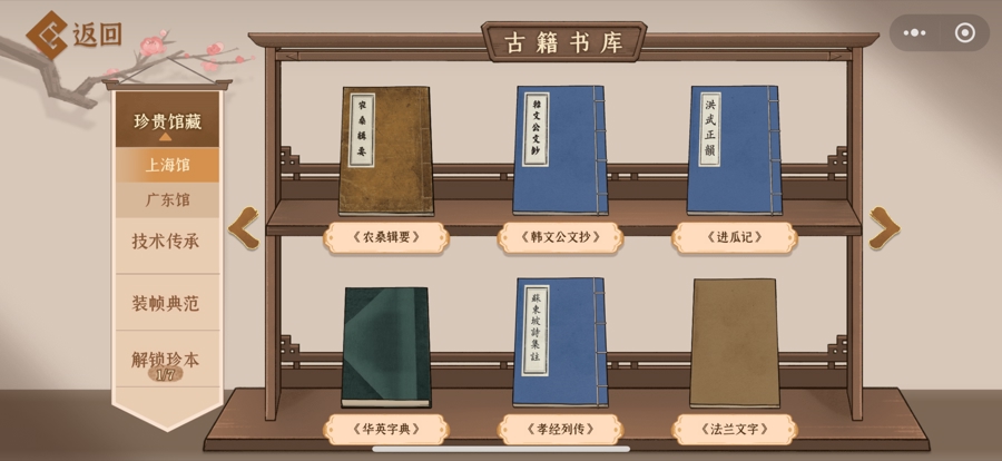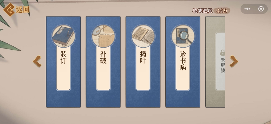 《微相入:妙手修古书》《古籍修复师》新书新游见面会里有一个环节就是游戏试玩。记者一同体验,游戏设有六个关卡,全部通关要花20分钟以上。从试炼、对症下药、纸寿千年到匠心补天、妙手丹心、朱墨灿然,每完成一个关卡,就能解锁一部古籍珍本。点击“兰台汲古”,可以通过古籍历史、修复历史、书病等级、修复工具、修复技艺等板块学习古籍修复相关知识,打开“古籍书库”,不仅能看到游戏通关解锁的珍本,还有上海馆、广东馆的珍贵馆藏。