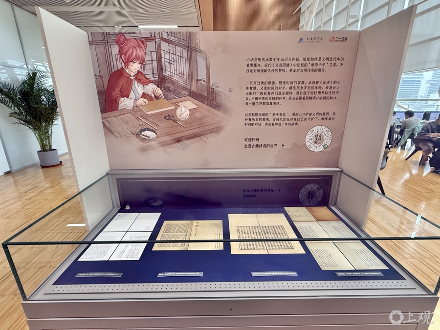 “古籍新生——《古籍修复师》互动展”在上图东馆展出。施晨露摄