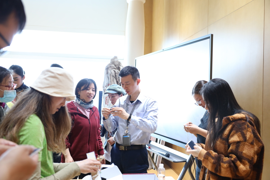 王晨敏(上图)、王岚(下图)带领读者动手体验。