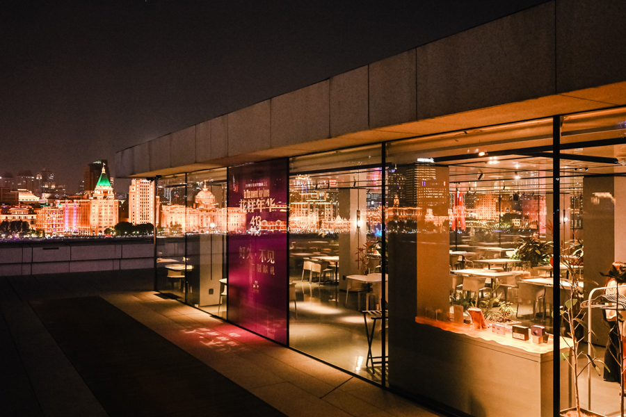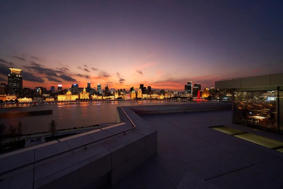 傍晚蓝调时刻,与渐变的粉紫色相融合,每一帧都好似是从电影画面里延伸出来。眺望黄浦江对岸,欣赏华灯初上的外滩建筑群,流光溢彩的璀璨夜景梦回《繁花》;望着不远处的东方明珠,仿佛触手可及,让人感叹“和你未似现在这样近”,现实世界与影像胶片之间不再有界限。