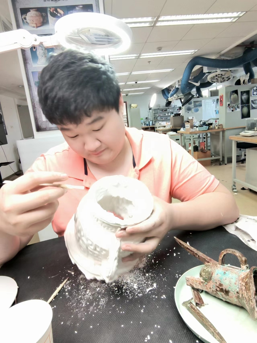 “文物修复技艺最好从小培养,最难的是审美。”她还记得自己1998年修复战国鎏金鹿形镇时,通过喷绘法仔细修补螺壳破损,被古人的审美深深震撼。“中国文物之美背后蕴含着文化的力量,需要从小耳濡目染去感受和理解。”