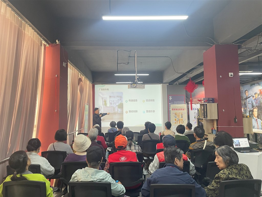 市市场监管局广告处以“拒绝虚假违法广告营销套路”为主题开展《广告法》基础知识讲座,结合保健品夸大宣传、金融高收益欺诈等贴近居民生活的案例,深入浅出地剖析《广告法》核心条款,为周家渡街道社区居民普及识别虚假广告的方式方法,保护消费者合法权益。讲座尾声,社区居民积极参与趣味问答环节,居民们踊跃举手,在欢声笑语中巩固广告合规法律知识,现场气氛热烈。